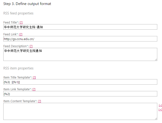 2作为链接,因为FEED43并不能打开网页输出全文,加上网站没有关于内容的说明,所以我选择不输出内容,所以我的RSS只有标题和链接,它对我的作用就是通知,我会点开链接自己上网站查看。