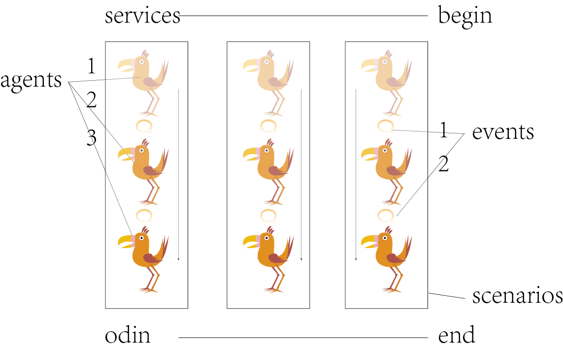 Huginn的状态栏很简单,agents指的是机器鸟,鸟儿们被分成组,执行不同的计划,这些分组称之为scenarios,同一组的鸟儿彼此间互相合作,在一个组里,第一只鸟儿的指令是主人下发的,第二只鸟儿的指令则是从第一只鸟儿执行完指令后生成的事件events中获取的。换句话说,当一只鸟儿获取到情报后,它会生成一个事件,同一组的鸟儿可以从这些事件中获取指令,开始自己的任务。Credentials和services指这些鸟儿常去的地点,其实就是别的服务程序的API接口,这些鸟儿从这里获得相关服务的信息。