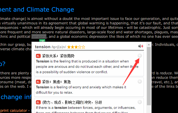 我的模板使用的区域名称如上图所示,对应Anki划词的右边标签取值即可。打开一个网页,按下Shift,鼠标左键点选,即可出现如下弹框,点击箭头所指的+即可添加到Anki,添加后会变成灰色,如图所示。(划词许开着Anki才可以制作卡片)