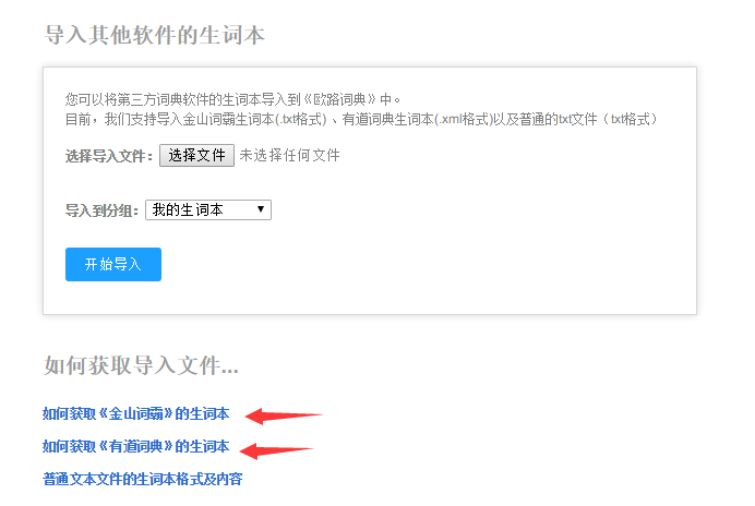 另外一种方法是,把生词本文件导入到欧路词典中,访问欧陆词典导入页面进行下一步操作。当然,你需要一个欧路词典账户,强烈推荐此账户,可同步多平台的生词。此网页的FAQ更加详细的教程,可以从金山词霸或者有道词典导入生词本。