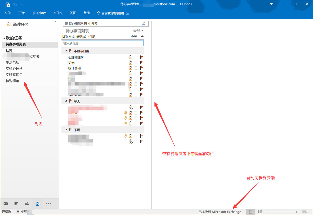 Outlook的任务功能,和提醒事项APP完美协作,层级足够使用,任务和日历事件同时可设置邮件自动提醒。
