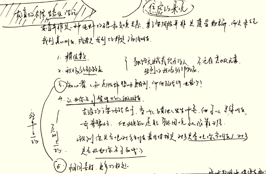 另外一种笔记,我称之为概念联系类笔记,其是使用白纸写的,你要对知识有一个了解,然后像VNN图/思维导图一样划出其内在的流程、关系、步骤,这种笔记看起来像是草纸,只是帮助你理清楚思路,一旦超过这个用途,其本身不再重要,并且,这张草纸上的东西一旦确定,应该牢牢地刻在你的脑子里,这是使用“手册”的前提。自然,这种关系的笔记是需要不断补充知识来不断修改的,因此需要实际实践经验的支持。并且,确定之后,经过未来的学习,其架构也有可能改变。