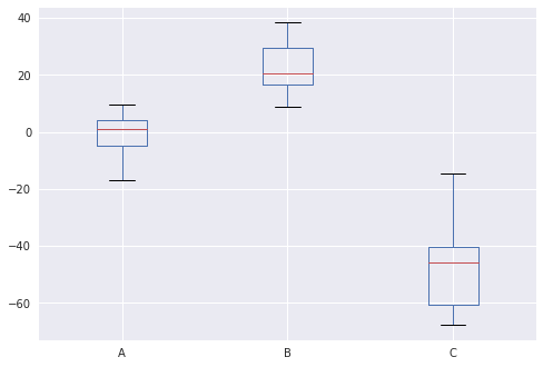 箱图是一种很好的用来展示数据差异性的图表,不同于Hist和隐晦的std,Box使用的四分位距能够直观的显示数据分散程度。Box的一个要点在于晶须的选择,也就是 whis参数,这个参数用来过滤偏差较为大的离散点,以防止其干扰四分位距描述数据整体的能力。使用range作为其值可以强制使用全部的点。