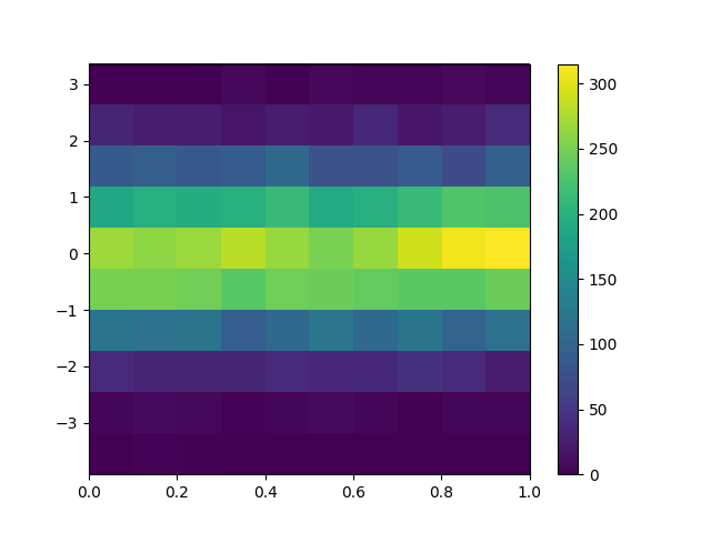 热图指的是一种形式的频率分布图,这种图形对于X轴为连续变量的类型表现很好,至于X轴是分类变量,则推荐使用hist。热图使用hist2d函数。同样的,其有bins参数的选择问题。